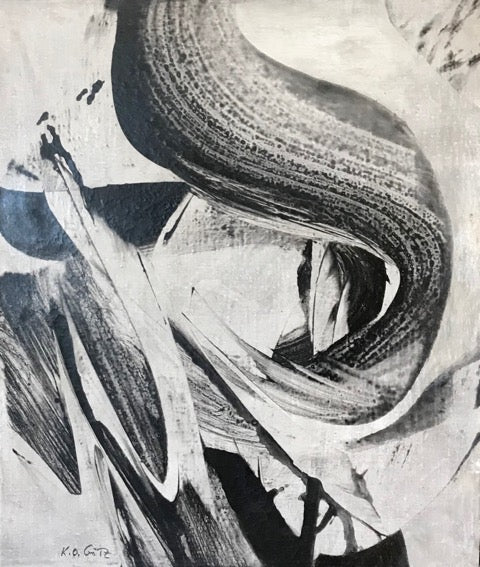 Götz malte nicht nur – er experimentierte mit Bewegung, Schwung und der Energie des Pinsels. Seine Arbeiten wirken wie kinetische Kompositionen, in denen jede Linie, jede Farbe und jeder Strich in einem dynamischen Dialog miteinander steht. Jedes Bild erzählt von Rhythmus, Ausdruck und innerer Freiheit – man kann förmlich die Energie des Künstlers spüren, die durch jede Fläche und jede Geste pulsiert. Seine Werke vermitteln zugleich Präzision und Spontaneität, Strenge und Freiheit, und fordern die Betrachter:innen dazu auf, Farbe, Linie und Bewegung aktiv zu erleben.